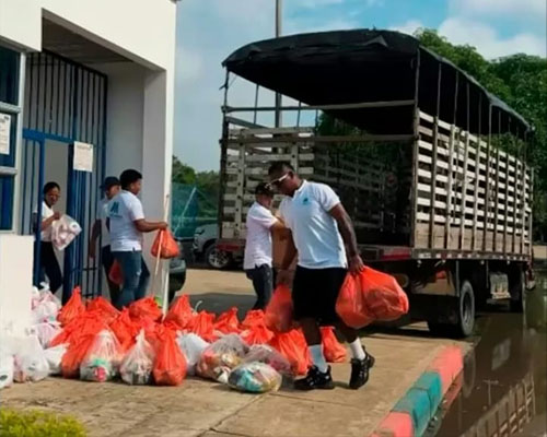 Los futbolistas suspendieron temporalmente sus entrenamientos para participar en la recolección y envío de ayudas humanitarias hacia el departamento de Córdoba y municipios cercanos, una de las zonas más afectadas por los desbordamientos de ríos y quebradas.